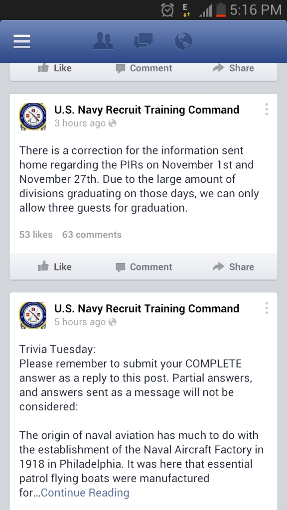 Marcy, thank you for sharing those links!! Also, thanks for the heartwarming goodbye story!!! My son is not PIRing until nov 1st, but in the short time he has been at bootcamp, I have found that navy people really are a family!! It's comforting to know that these kids look out for each other when they are so far from home.